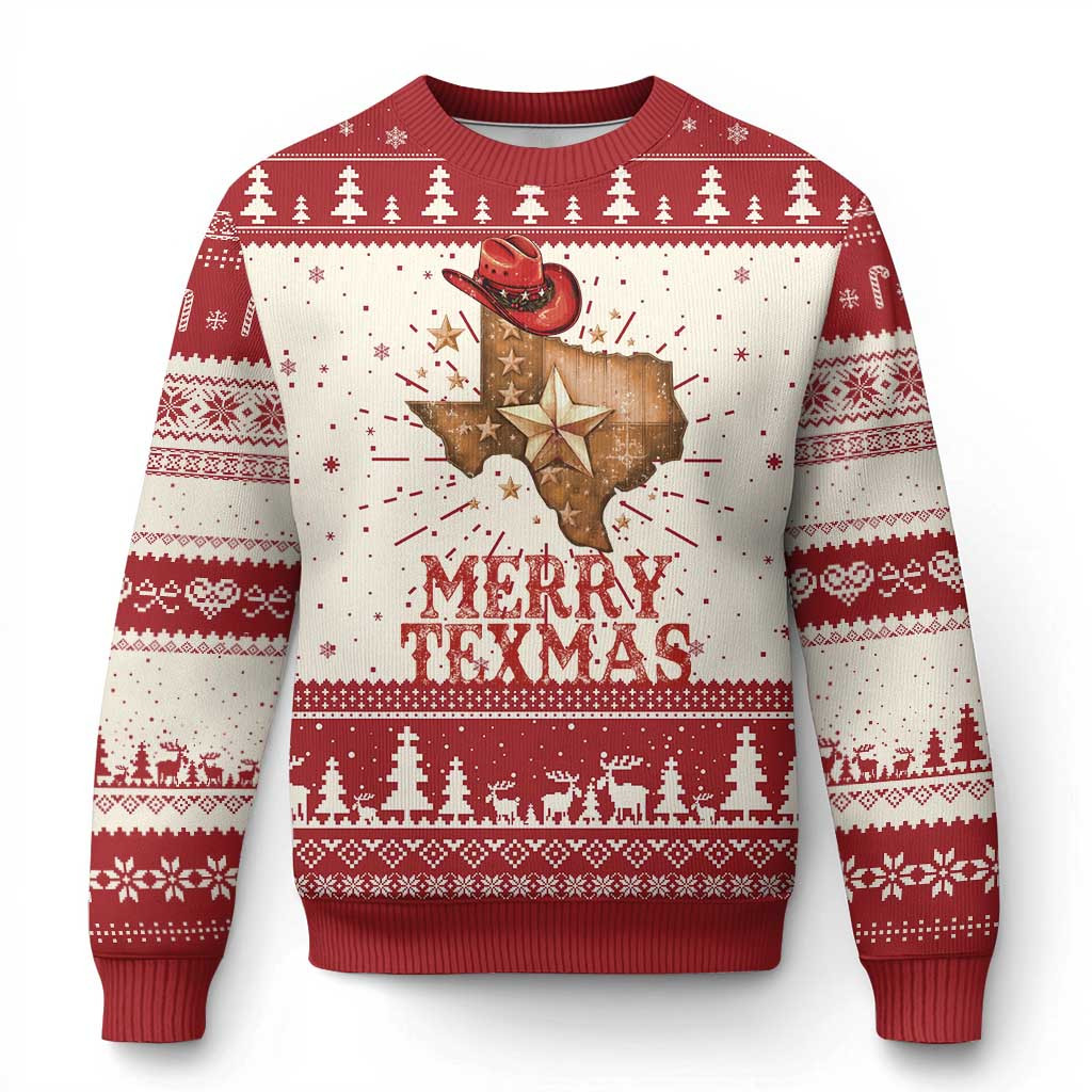 Rushgleam Merry Texmas Ugly Christmas Sweater Cozy Holiday Jumper Santa Cowboy Hat Gifts For Brother