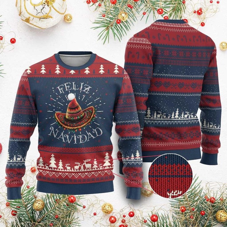 Rushgleam Mexico Hat Feliz Navidad Ugly Christmas Sweater Best Xmas Jumper Gifts For Sombrero Lovers