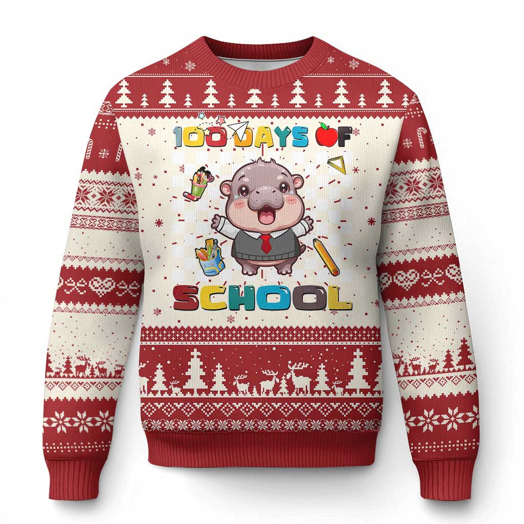 Rushgleam Moo Deng 100 Days Of School Ugly Christmas Sweater Cute Xmas Sweater Baby Hippo Gifts