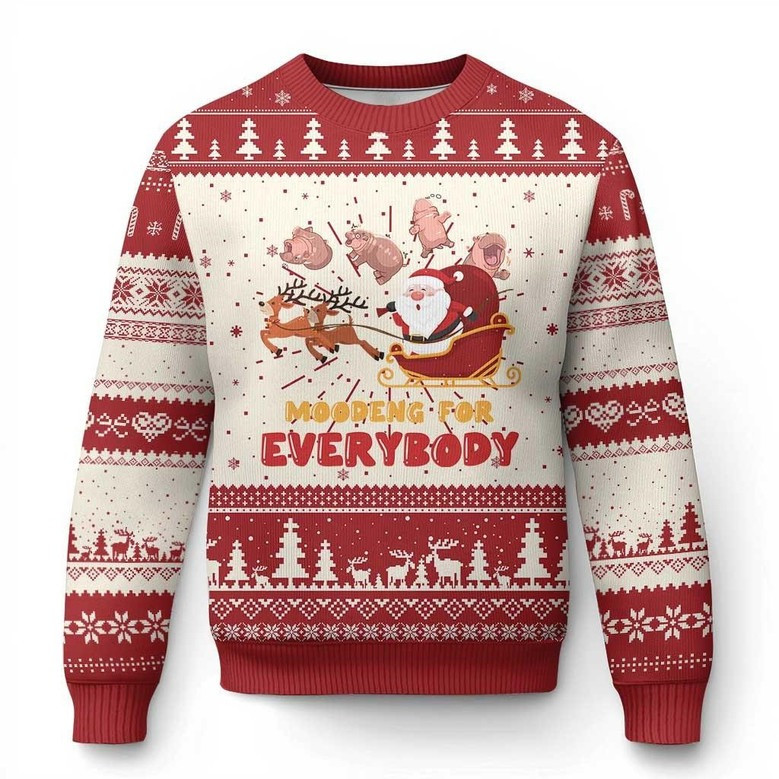 Rushgleam Moo Deng For Everyone Cute Christmas Sweaters Reindeer Santa And Hippo Clothes Xmas Gifts