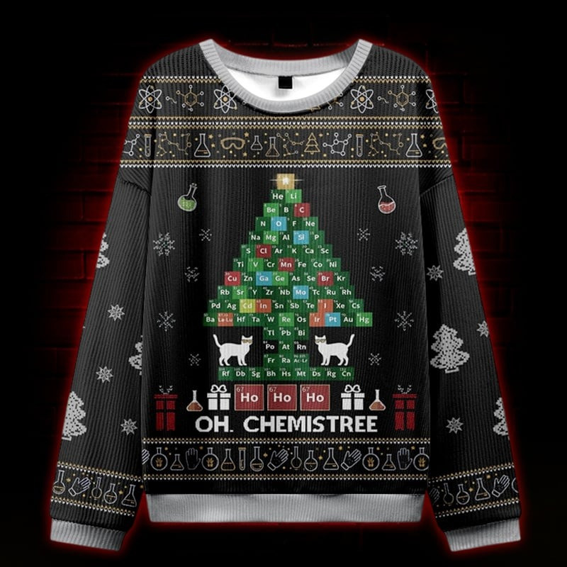 $39.99 – $44.99Price range: $39.99 through $44.99Cats Ho Ho Ho Oh Chemistree Ugly Christmas Sweater Cute Xmas Holiday Gifts For Cat Lovers