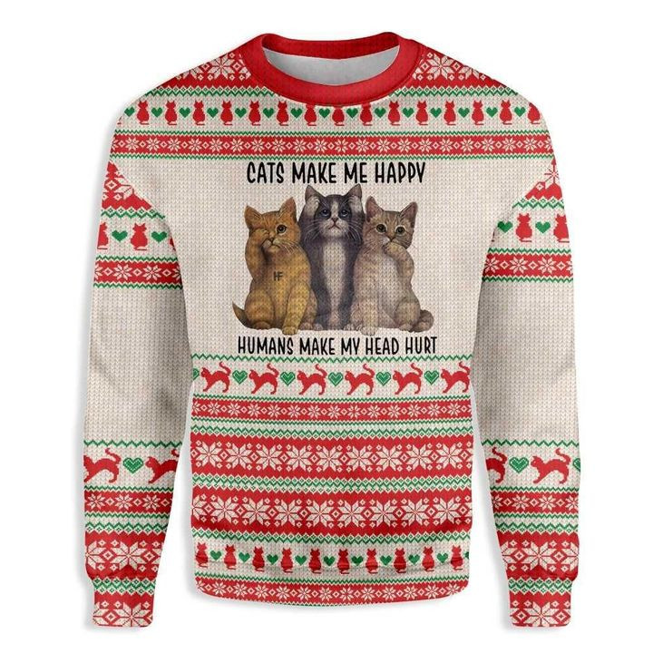 Cats Make Me Happy Ugly Christmas Sweater Cute Kitty Pullover Best Holiday Gifts 2025