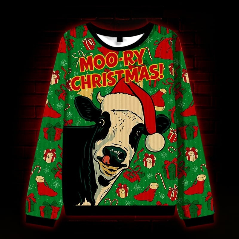 Cow Moo-Ry Ugly Christmas Sweater Funny Christmas Holiday Apparel Gifts For Cow Lovers