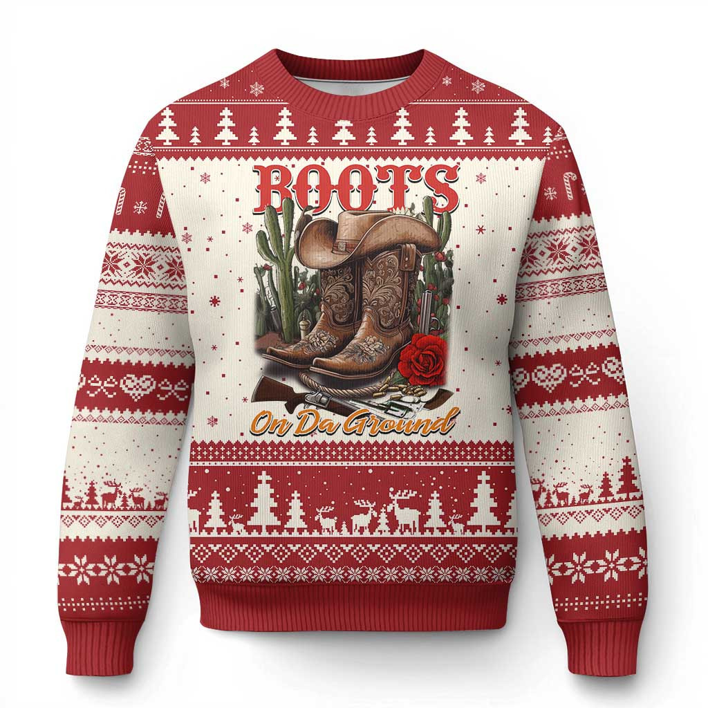 Cowboy Boots On The Ground Ugly Christmas Sweater Western Cowgirl Jumper Xmas Gifts For Her