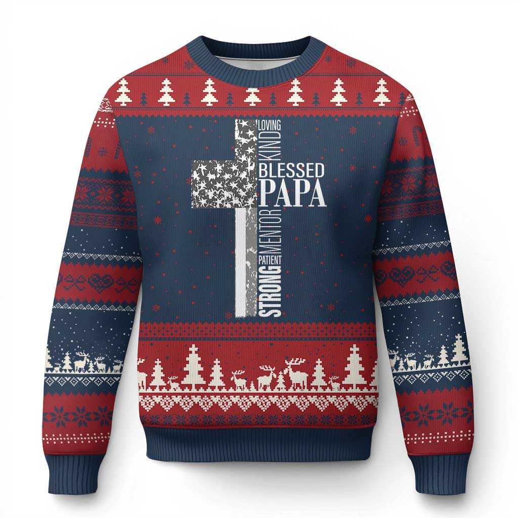 Cross Blessed Papa Ugly Christmas Sweater Faithful Religious Sweater Christian Xmas Gifts