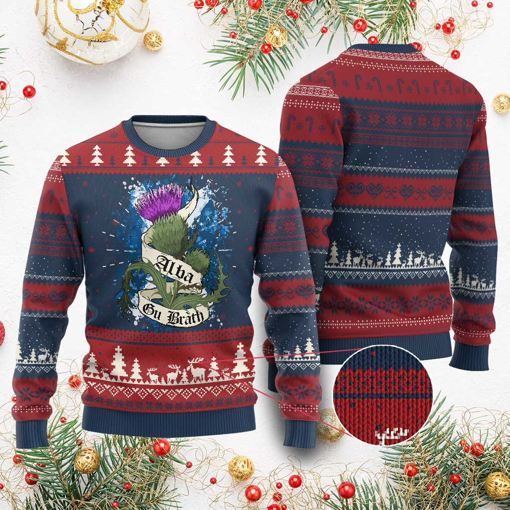 Alba Gu Brath Ugly Christmas Sweater Vintage Thistle Flower Sweater Scotland Flag Gifts