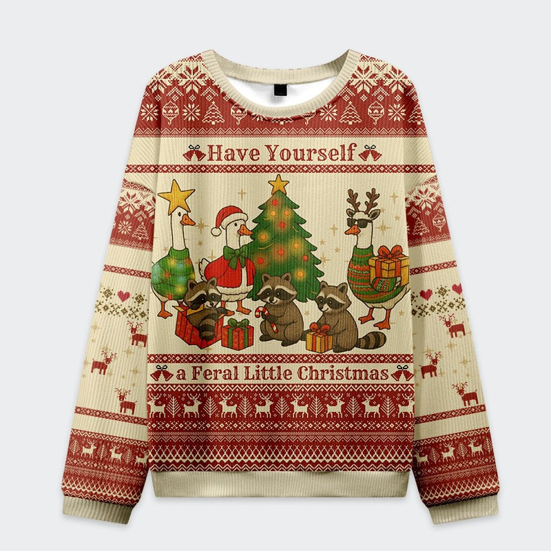 $39.99 – $44.99Price range: $39.99 through $44.99Ducks Racoons A Feral Little Ugly Christmas Sweater Xmas Apparel Gifts For Animal Lovers