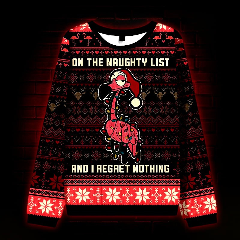 Flamingo On The Naughty List Ugly Christmas Sweater Funny Xmas Apparel Gifts For Her