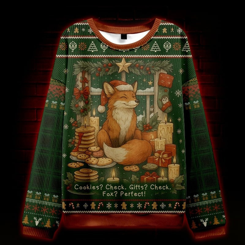 Fox Cookies Check Gift Check Ugly Christmas Sweater Cute Xmas Gifts For Fox Lovers