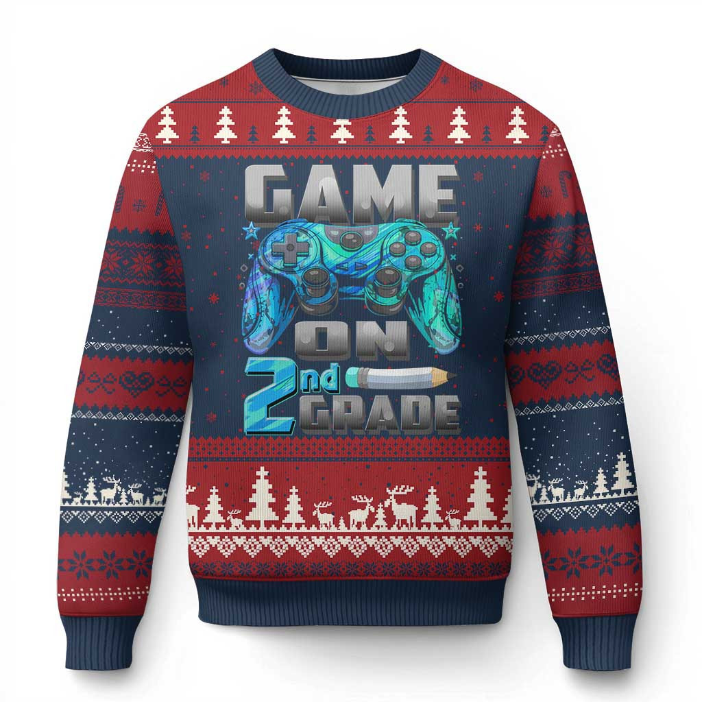 Game On 2nd Grade Ugly Christmas Sweater Kids Back To School Day Sweater Gifts For Gamer