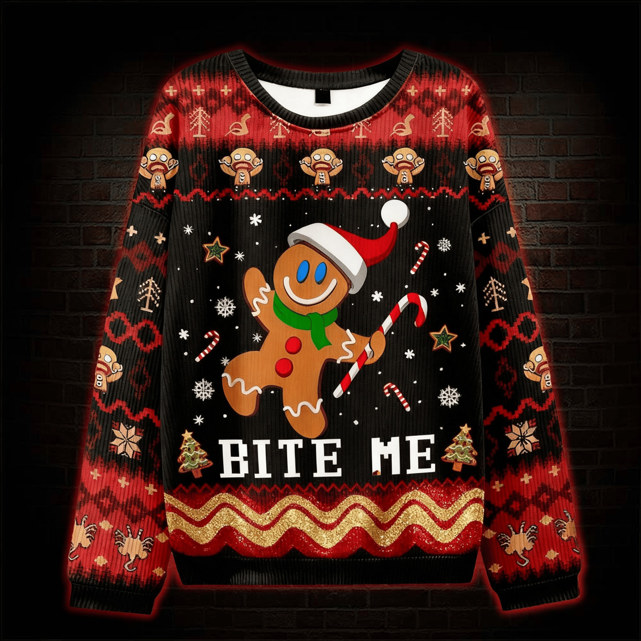 Gingerbread Bite Me Christmas Sweater Funny Xmas Holiday Gifts For Gingerbread Lovers