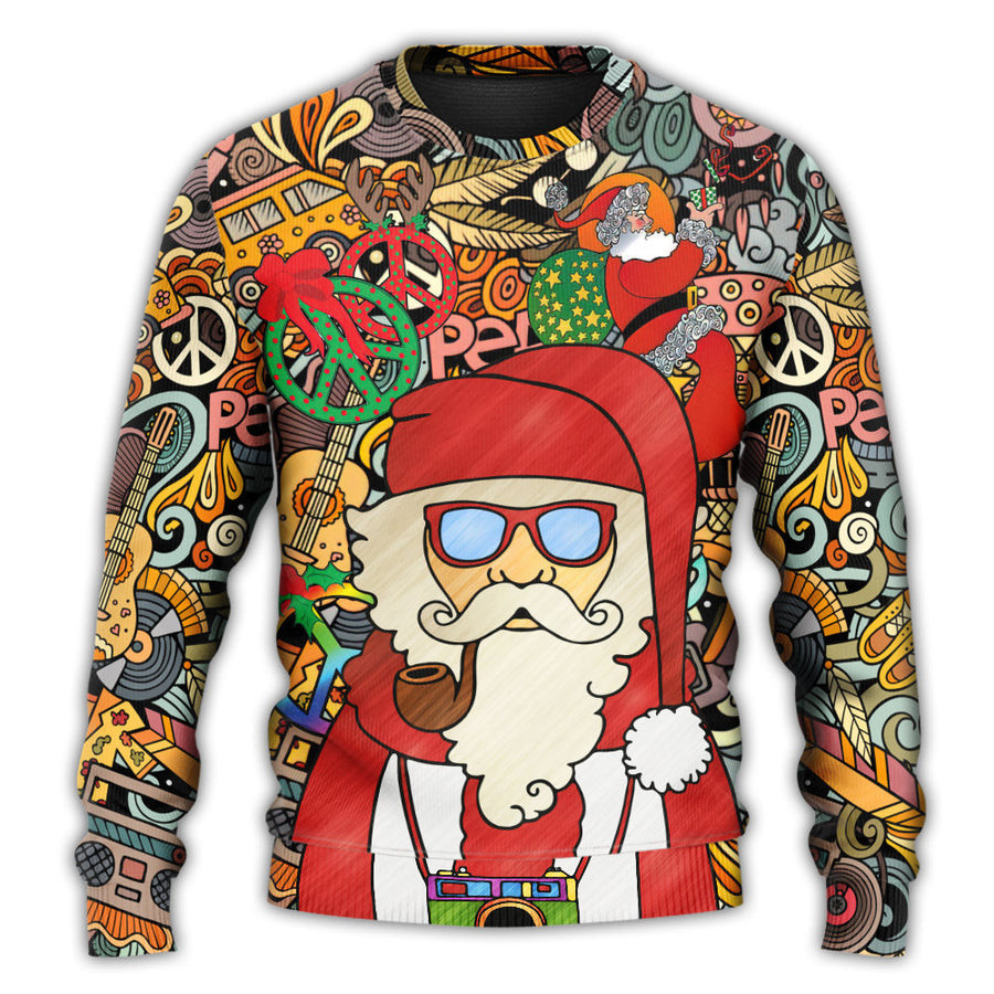 Hippie Santa Ugly Christmas Sweater Funny Santa Clothing Xmas Holiday Hippie Style Gifts