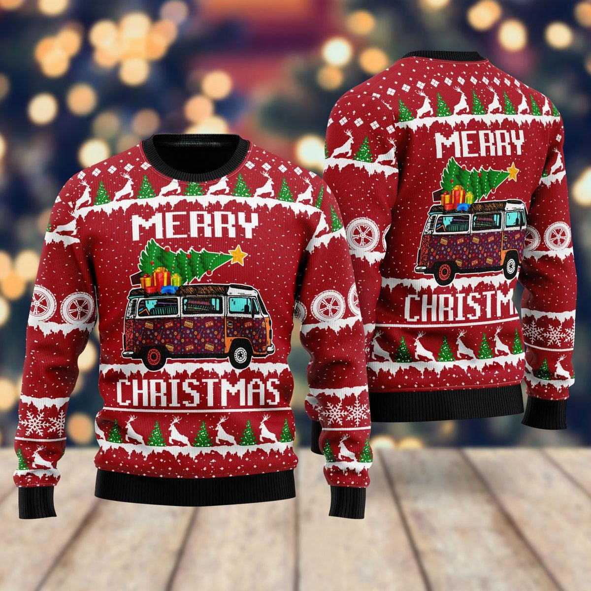 Hippie Van Merry Christmas Ugly Holiday Jumper Hippie Themed Sweaters Christmas Gifts
