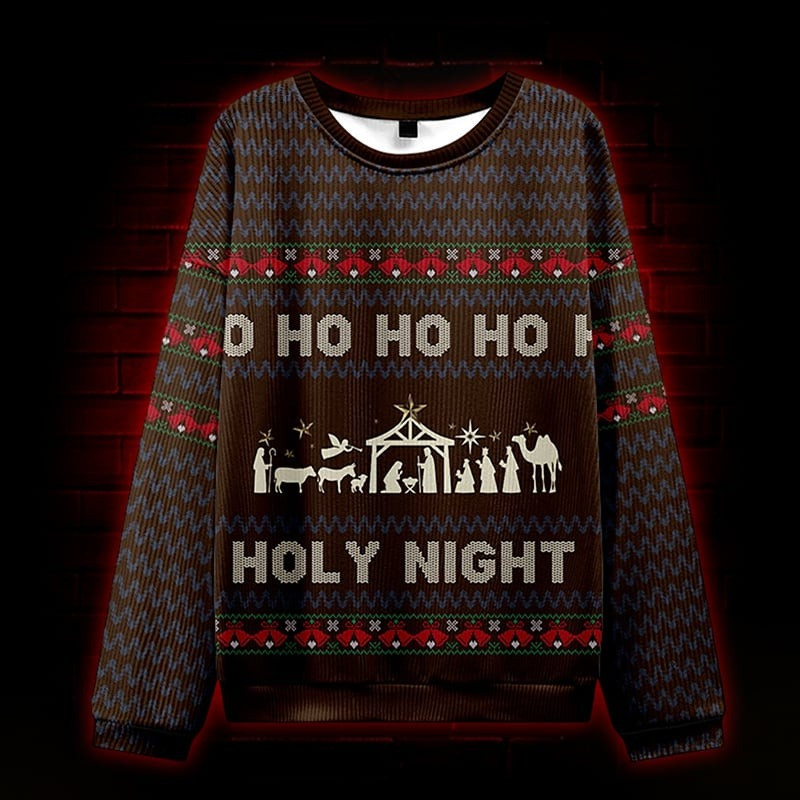 Ho Ho Ho Holy Night Ugly Christmas Sweater Funny Xmas Holiday Gifts For Baby Jesus Lovers