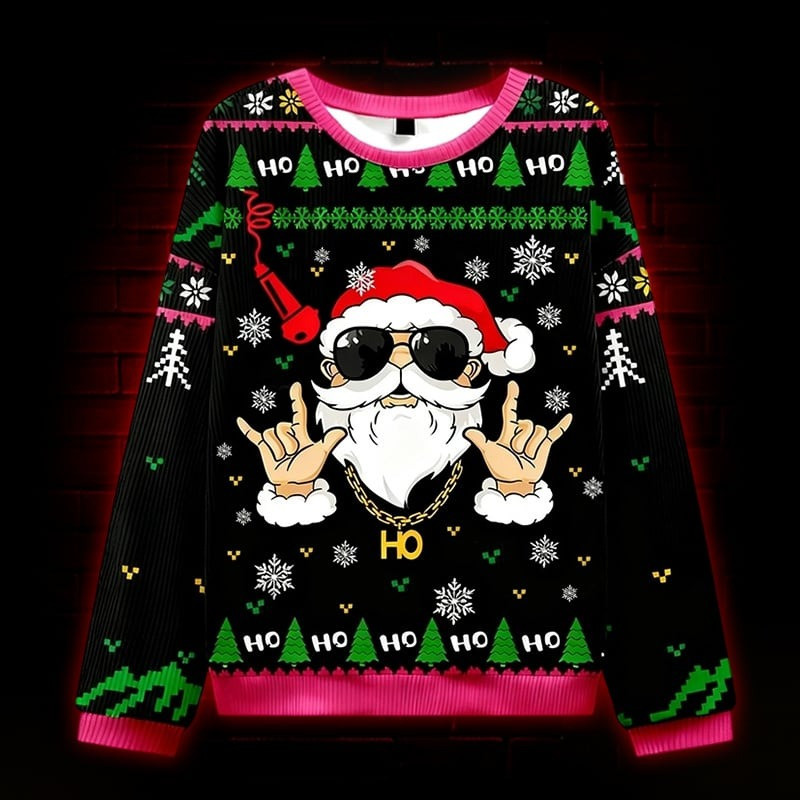 HO HO HO Rock Santa Ugly Christmas Sweater Funny Xmas Holiday Clothing Gifts For Him