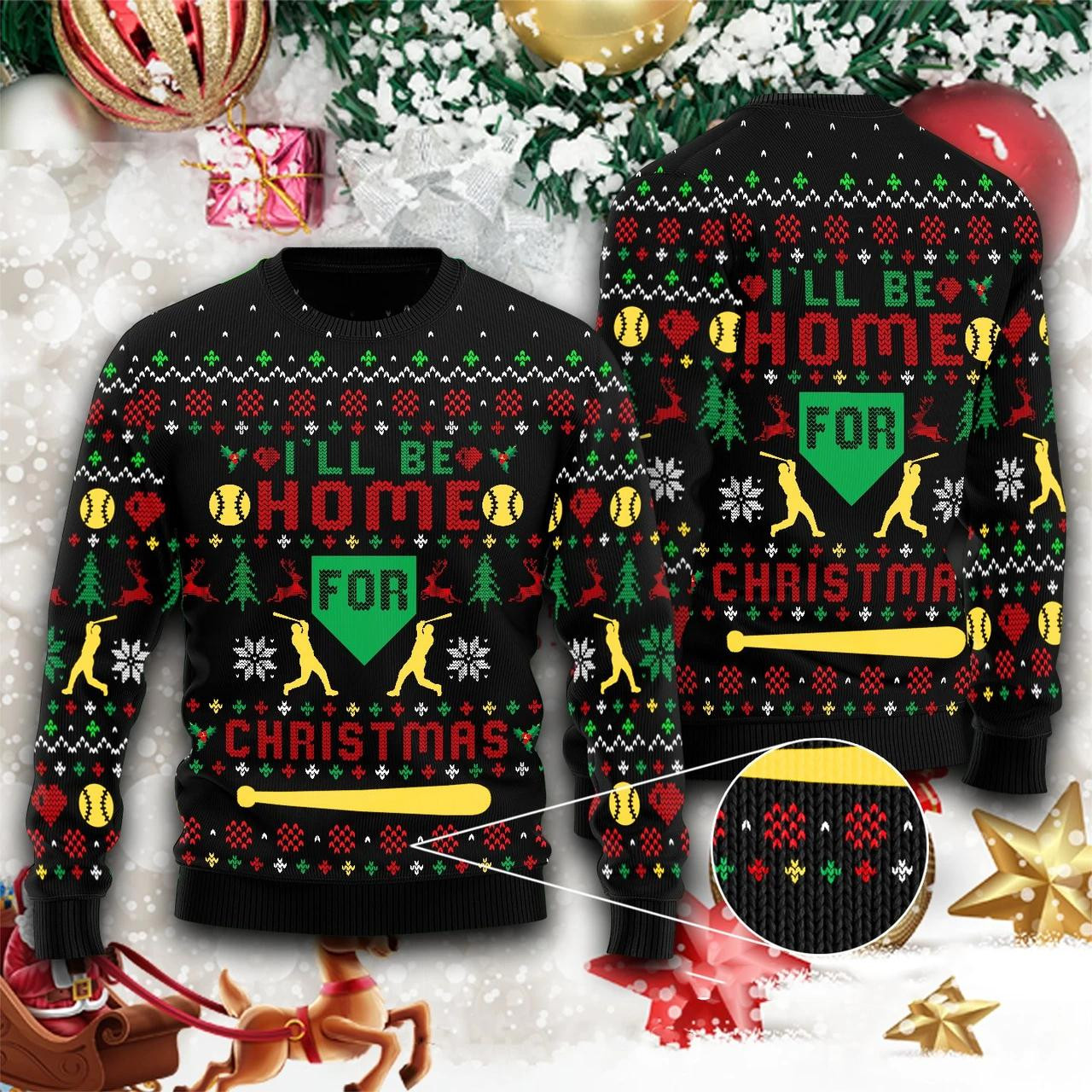 I Will Be Home For Christmas Ugly Sweater Baseball Themed Christmas Gifts For Player