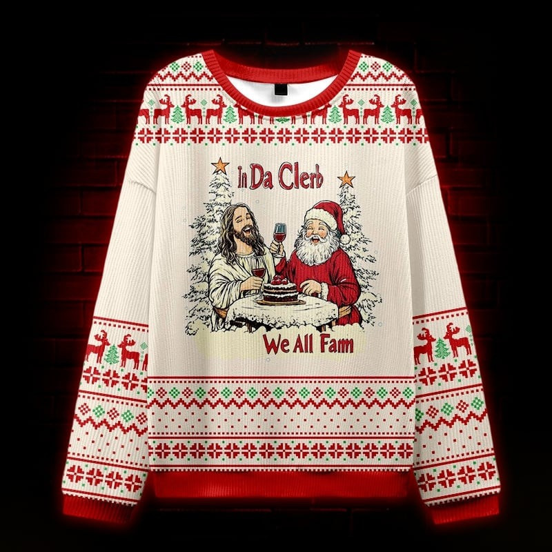 In Da Clerb We All Fam Ugly Christmas Sweater Funny Santa Xmas Gifts For Jesus Lovers