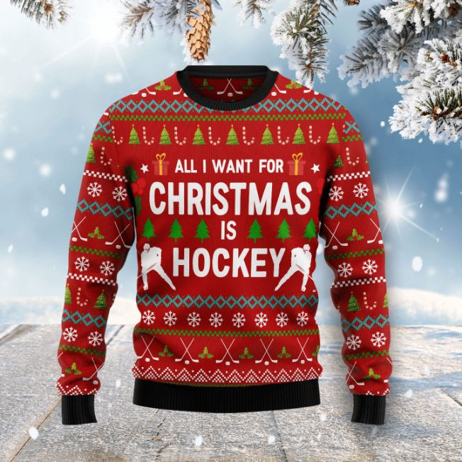 All I Want For Christmas Is Hockey Ugly Christmas Sweater Gifts For Ice Hockey Players