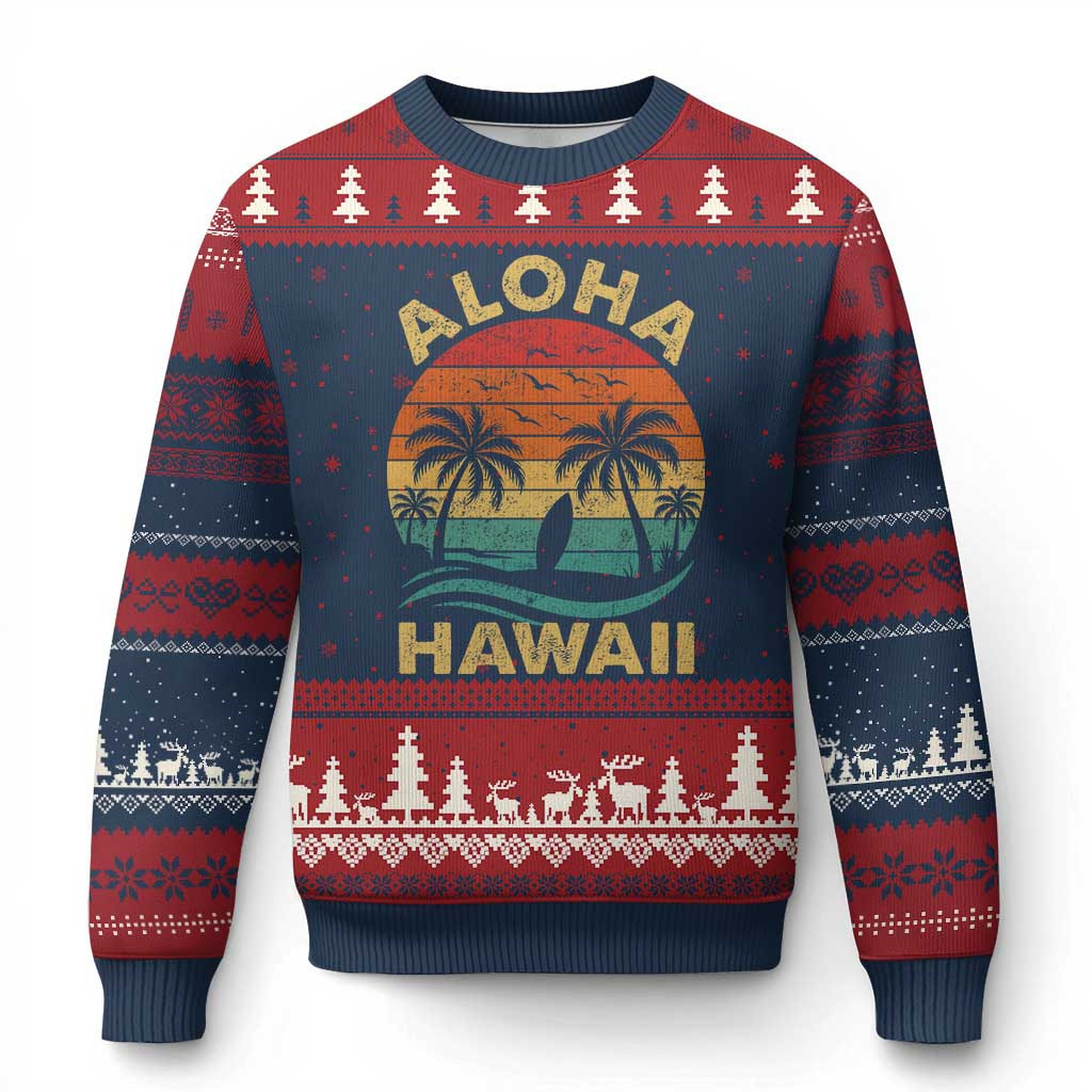Aloha Beach Palm Tree Ugly Christmas Sweater Hawaiian Beach Sweater Gifts For Xmas