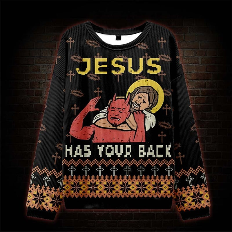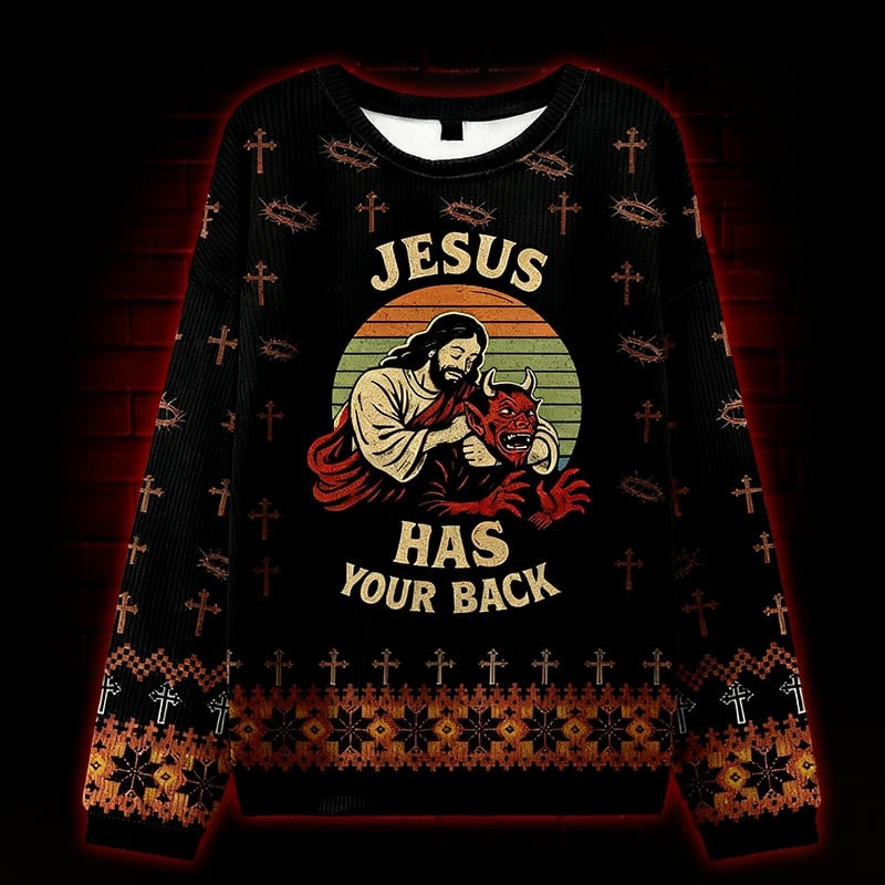 Jesus Has Your Back Ugly Christmas Sweater Funny Jesus Xmas Clothing Gifts For Believers