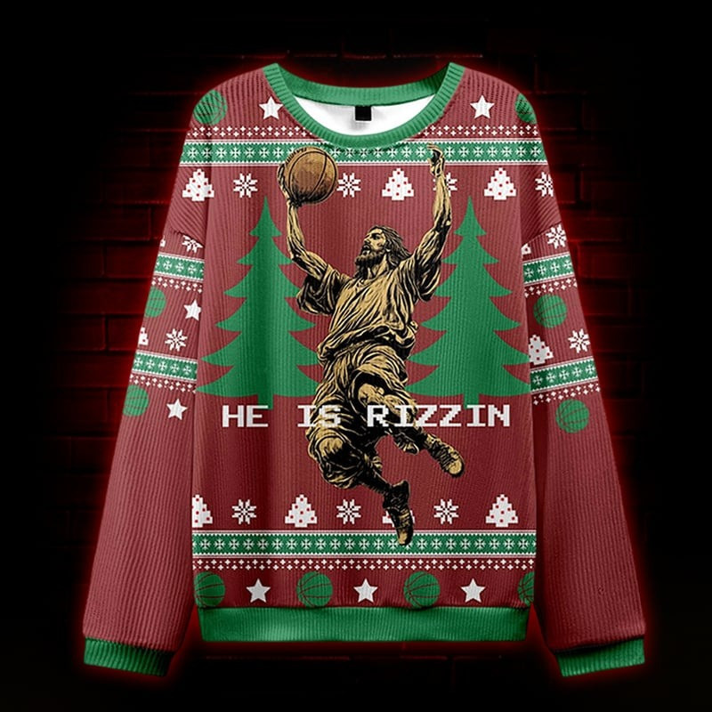 Jesus He Is Rizzin Ugly Christmas Sweater Funny Jesus Xmas Holiday Gifts For Christians