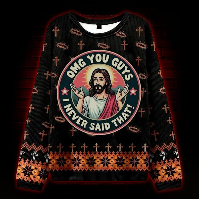 $39.99 – $44.99Price range: $39.99 through $44.99Jesus I Never Said That Ugly Christmas Sweater Funny Christmas Jumpers Men’s Gift Ideas