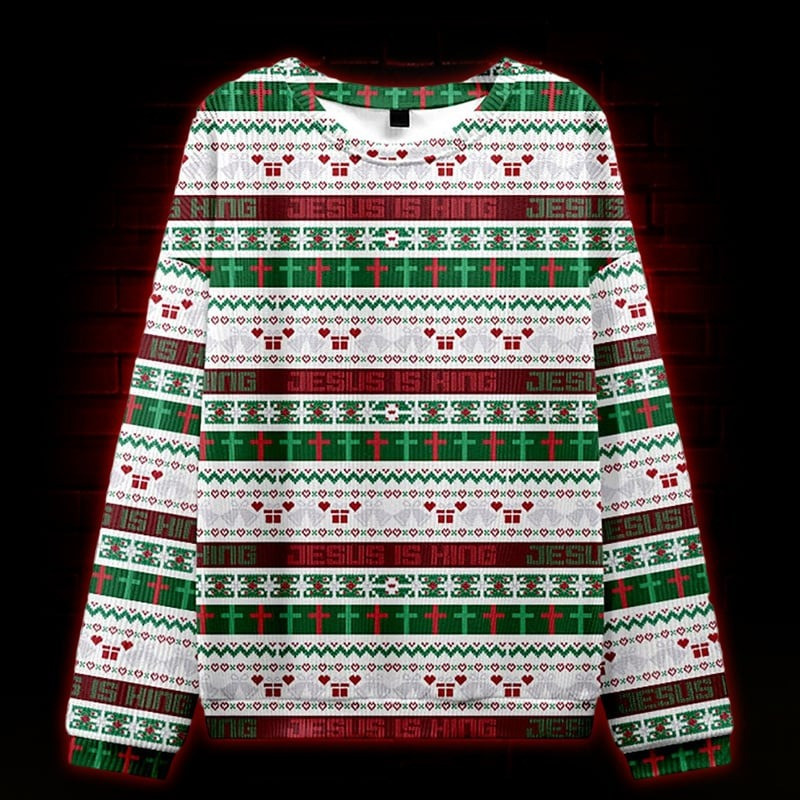 Jesus Is King Design Ugly Christmas Sweater Xmas Apparel Best Gifts For Christians
