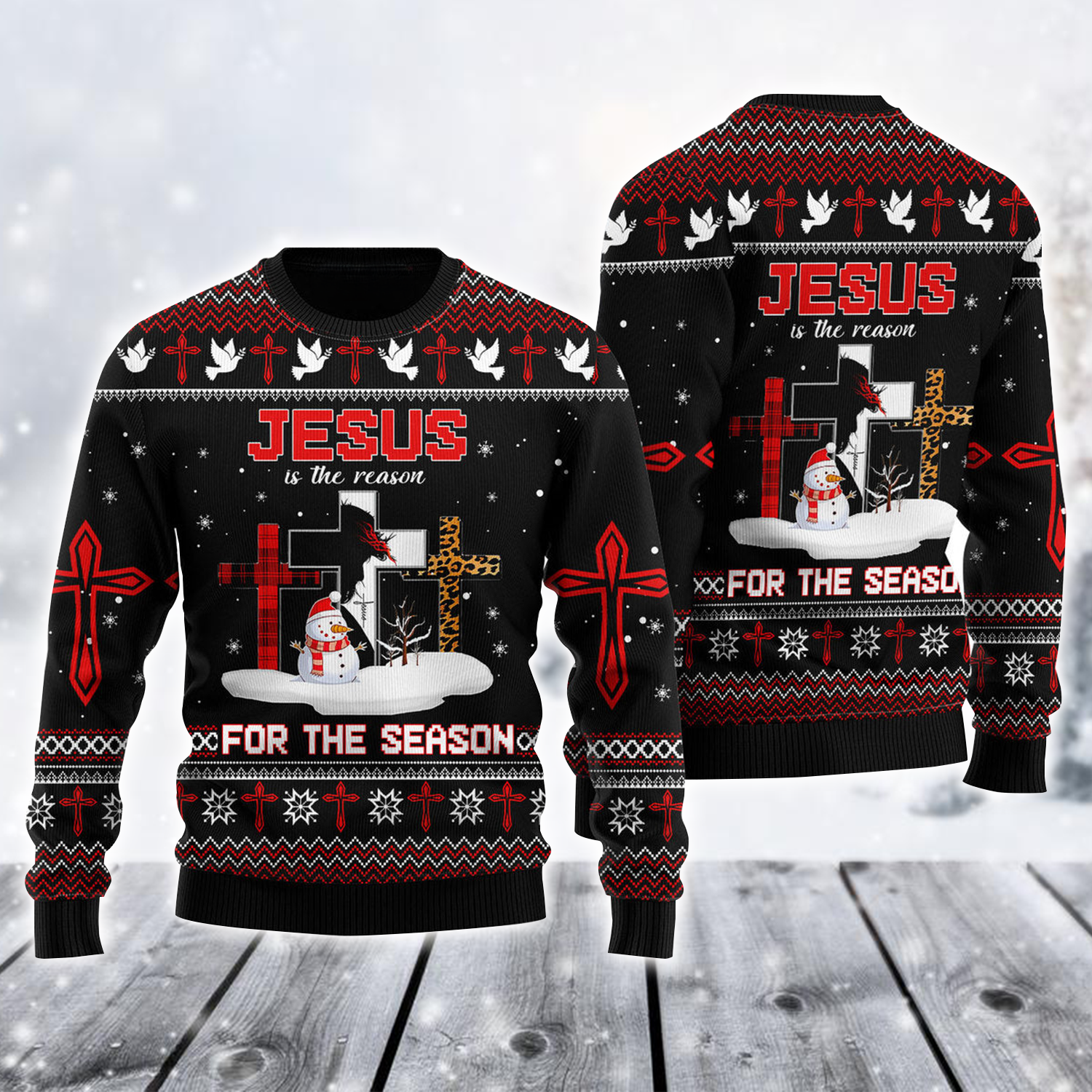 Jesus Is The Reason For The Season Ugly Holiday Jumper Cross Christian Clothes Christmas Gifts