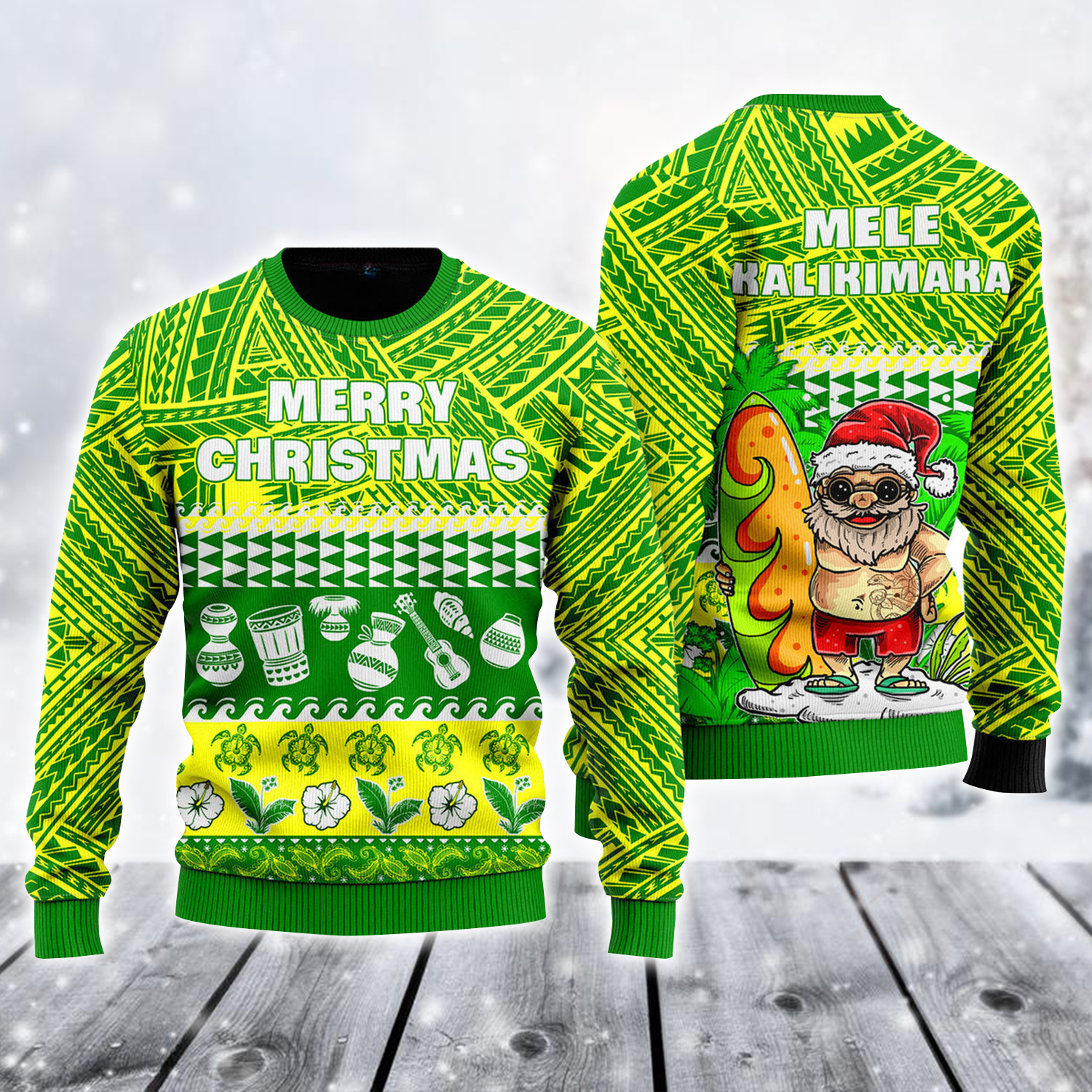 Merry Christmas Santa Surfing Mele Kalikimaka Ugly Christmas Sweater Hawaii Themed Gifts