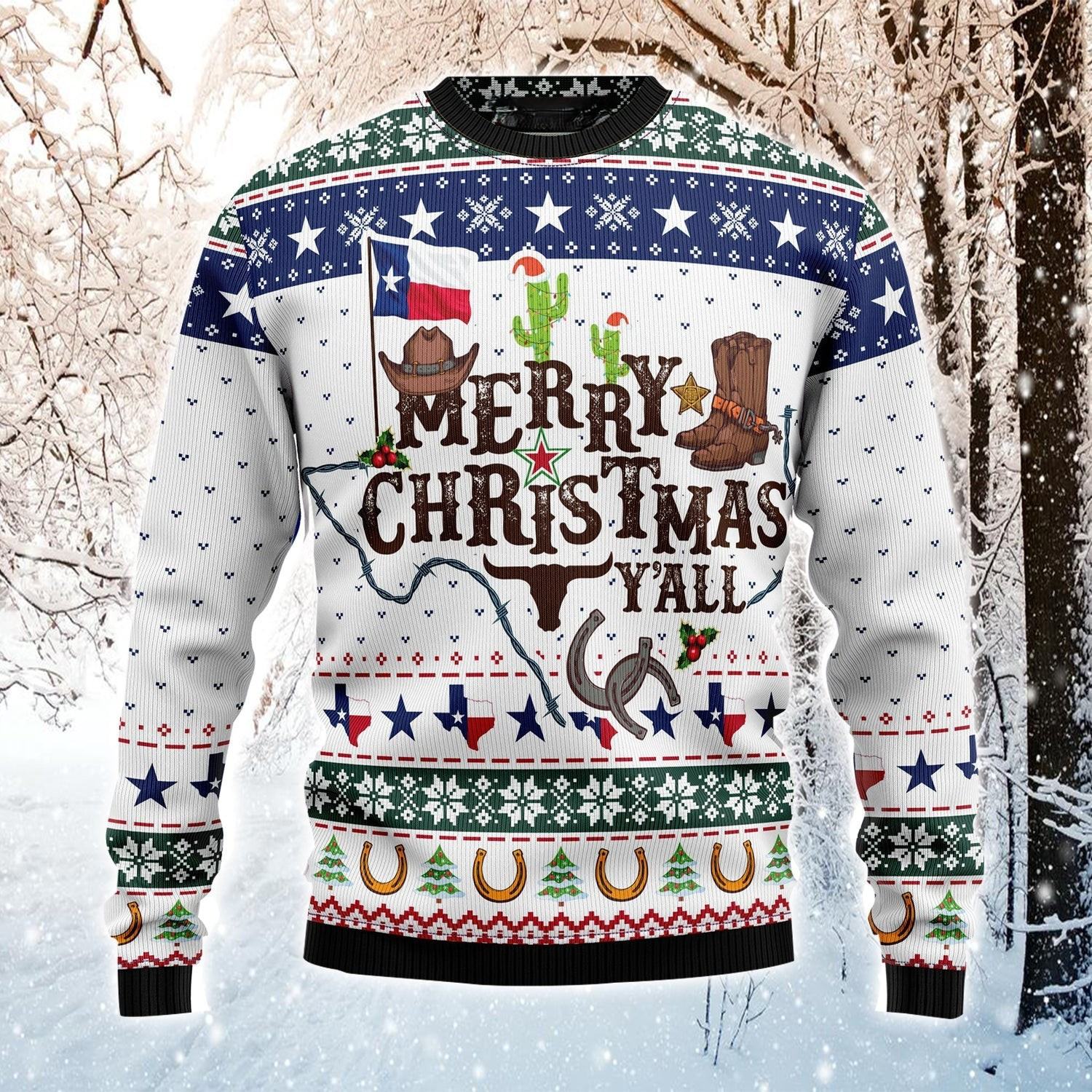 Merry Christmas Y’all Ugly Christmas Sweater Texas Flag Funny Jumper Gift For Texas Lovers