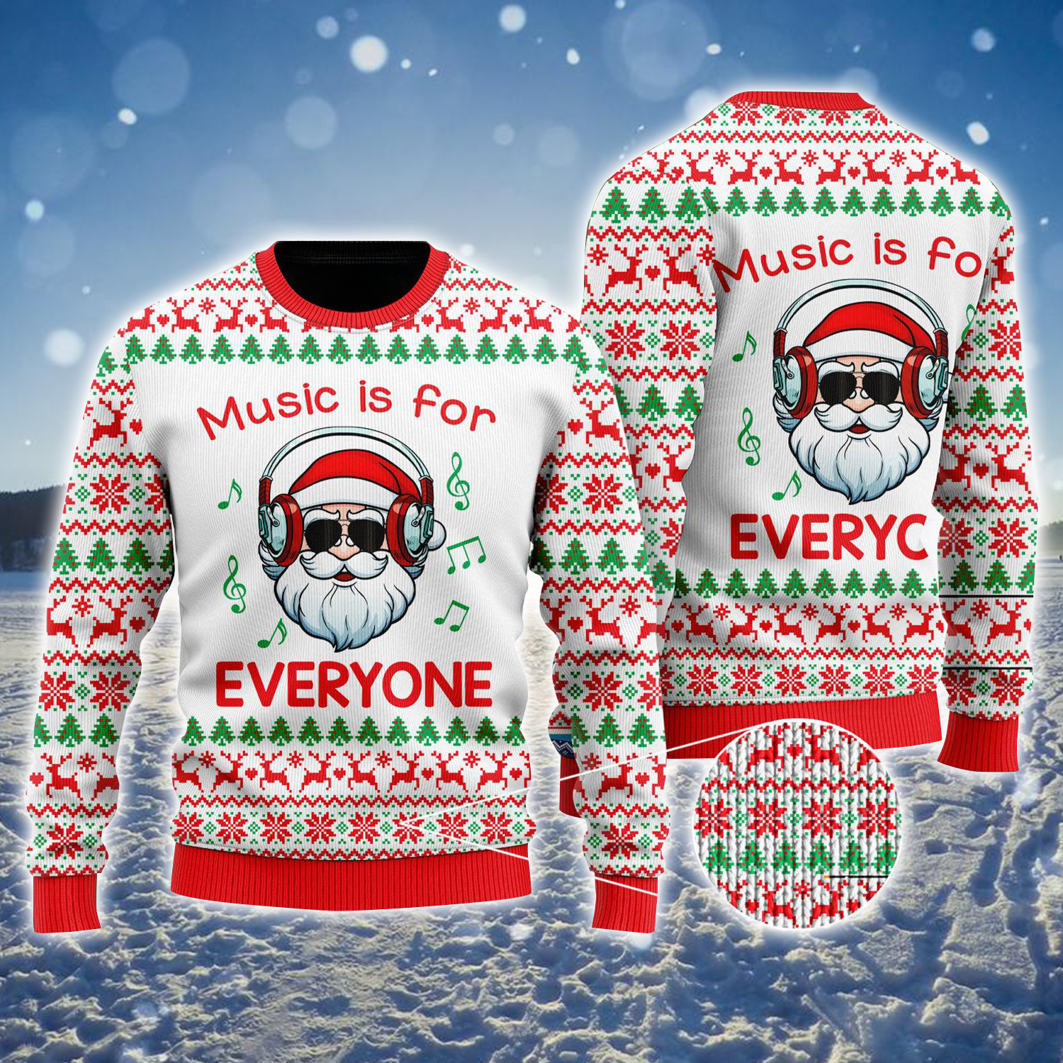 Music Is For Everyone Ugly Holiday Jumper Santa Themed Clothing Xmas Gift For Music Lovers