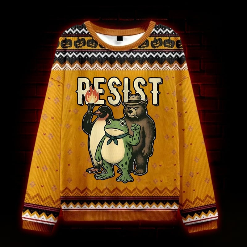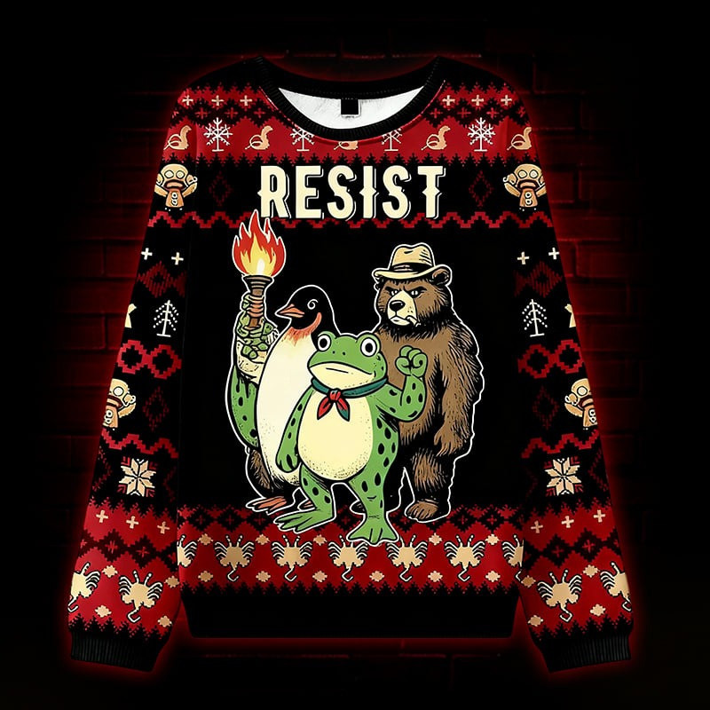 Portland Frog Penguin Bear Resist Ugly Christmas Sweater Cute Xmas Jumpers Gifts For Her