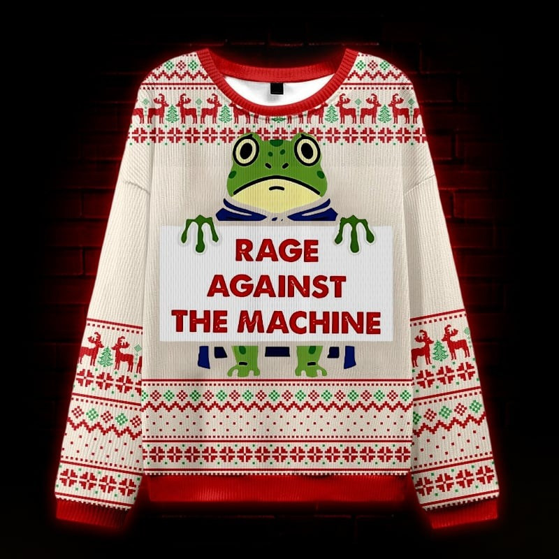 Portland Frog Rage Against The Machine Ugly Christmas Sweater Xmas Apparel Gifts For Her