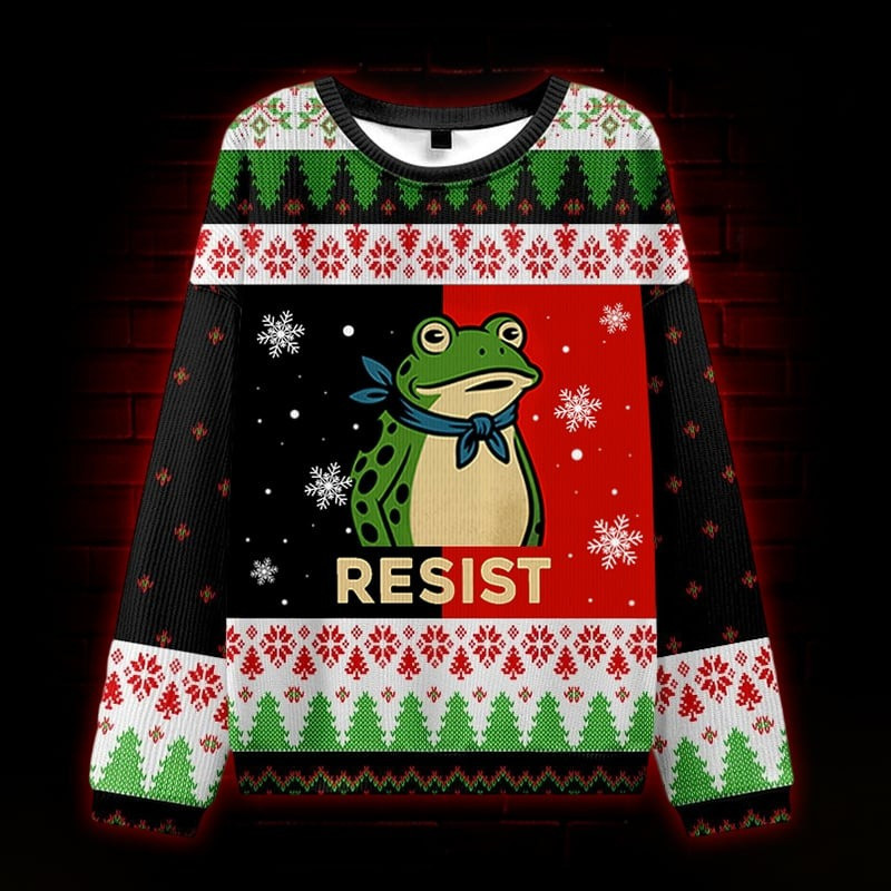 Portland Frog Resist Ugly Christmas Sweater Funny Xmas Sweater Apparel Gifts For Frog Lovers