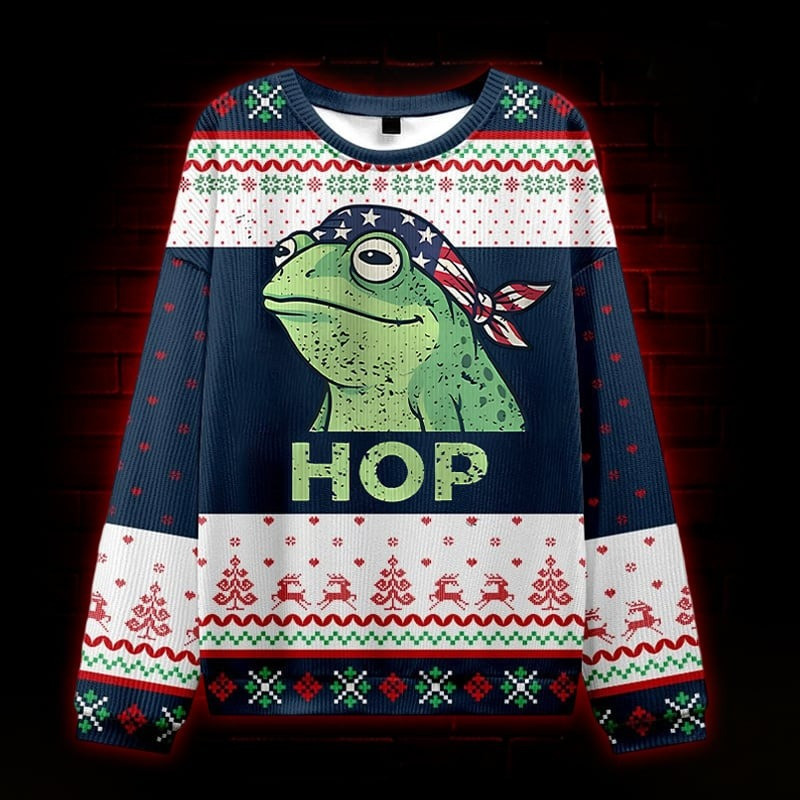 Portland Frog Us Hop Ugly Christmas Sweater Funny Xmas Holiday Gifts For Frog Lovers