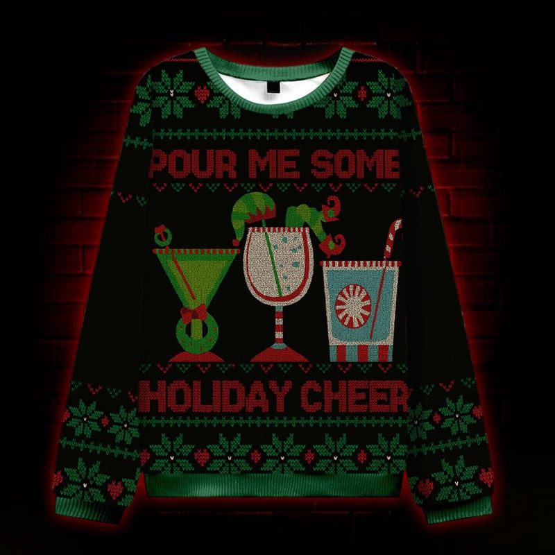 Pour Me Some Holiday Cheer Ugly Christmas Sweater Best Xmas Gifts For Cocktail Lovers