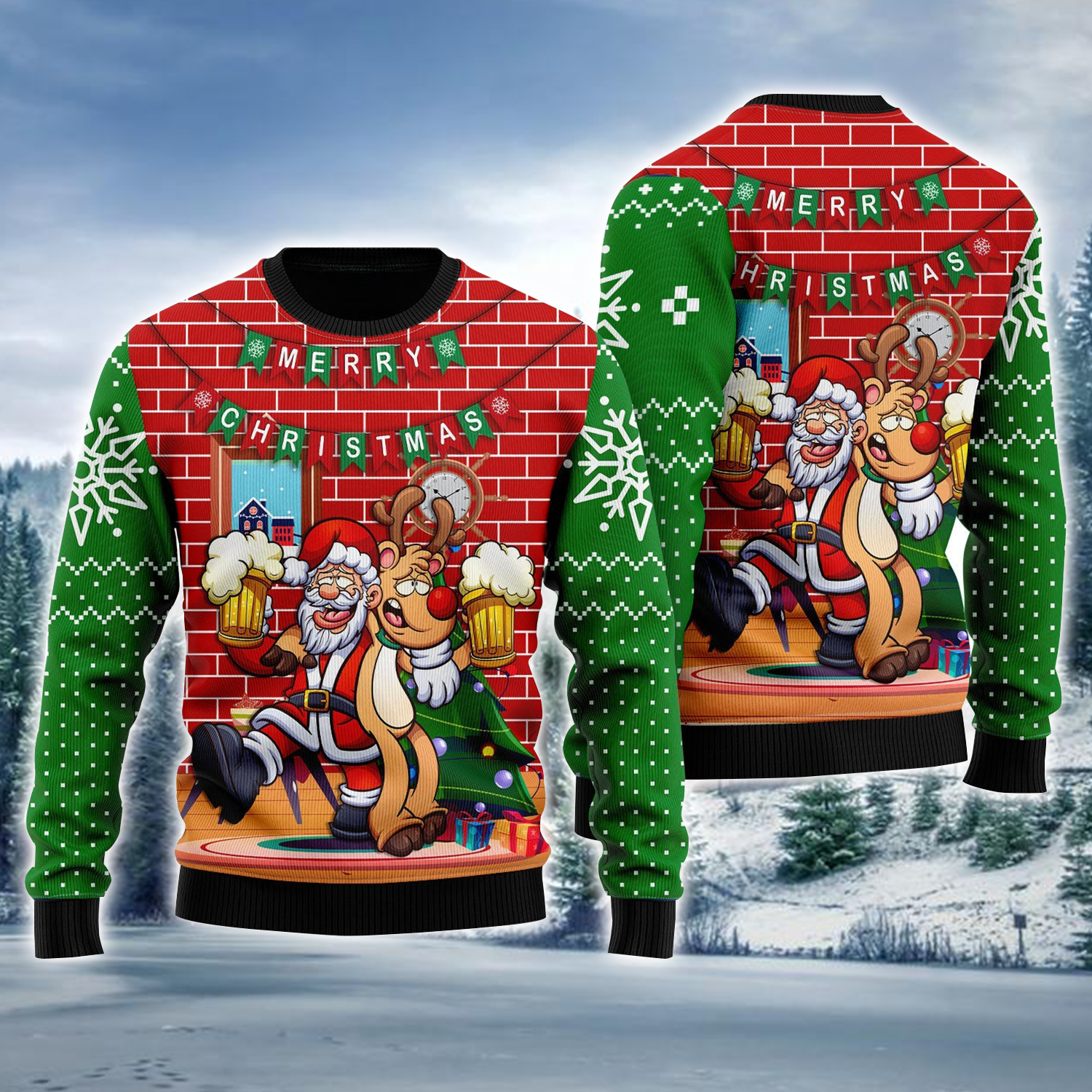 Reindeer And Santa Claus Ugly Holiday Jumper Winter Sweaters Christmas Gift For Beer Lovers