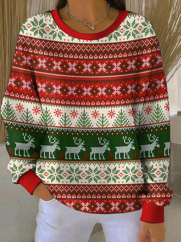 Reindeer Christmas Sweater Snow Graphic Printed Unique Xmas Clothing Gifts For Her