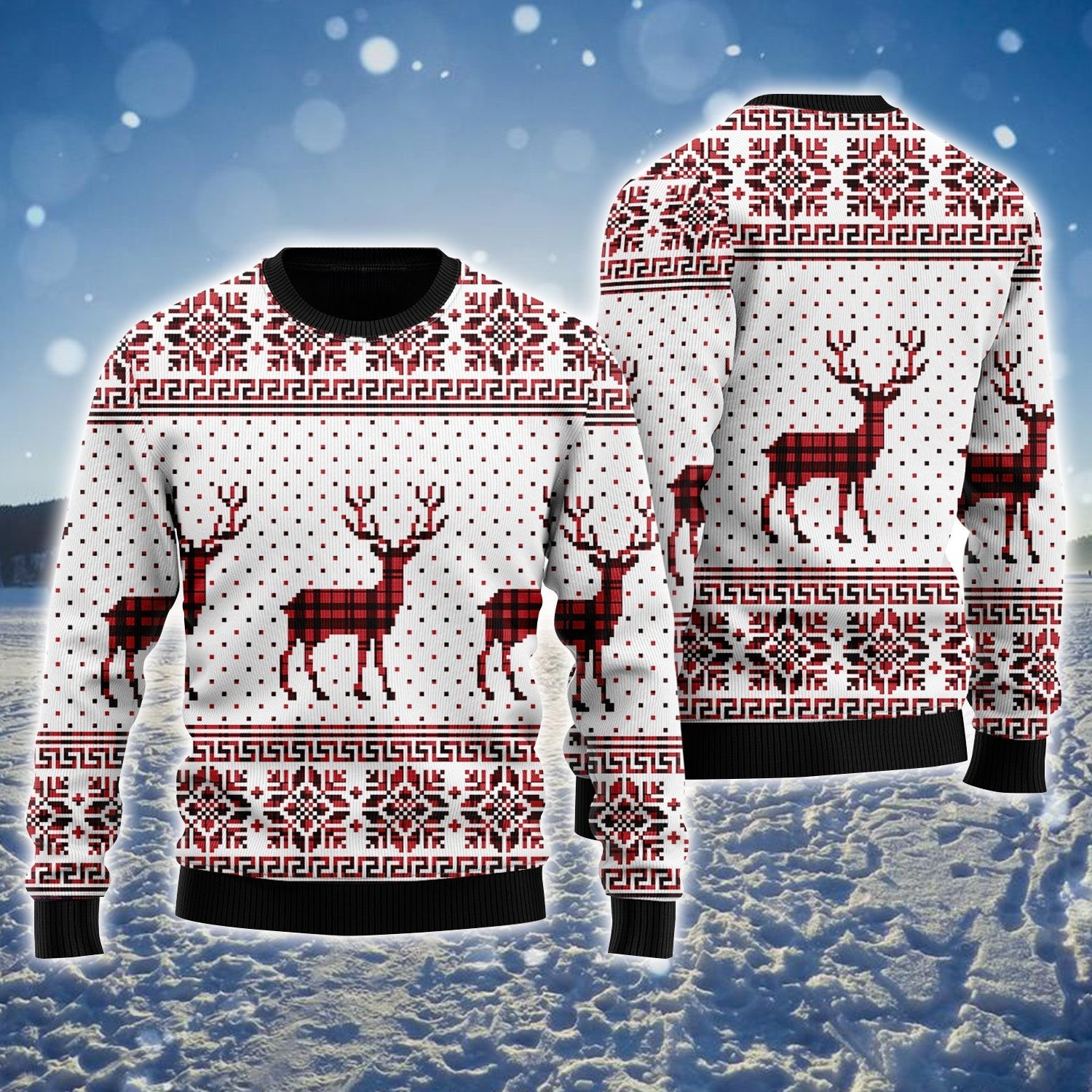 Reindeer And Snowflake Pattern Ugly Holiday Festival Jumper Sweaters Christmas Gifts For Men