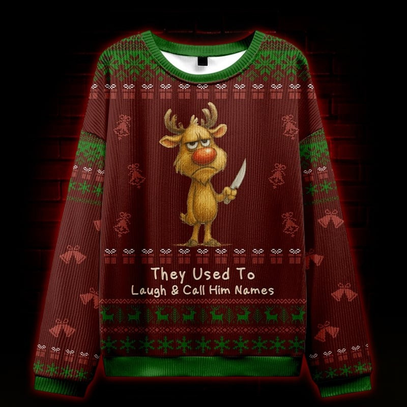$39.99 – $44.99Price range: $39.99 through $44.99ReinDeer Holding Knife Call Him Names Ugly Christmas Sweater Funny Xmas Holiday Gifts