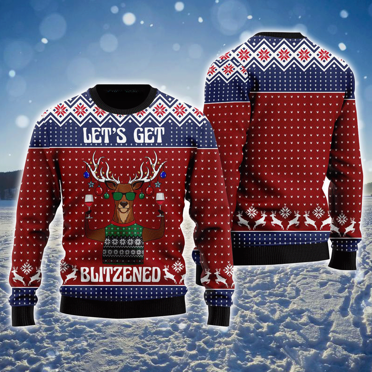 Reindeer Let’s Get Blitzened Ugly Holiday Jumper Funny Sweater Christmas Gifts For Him