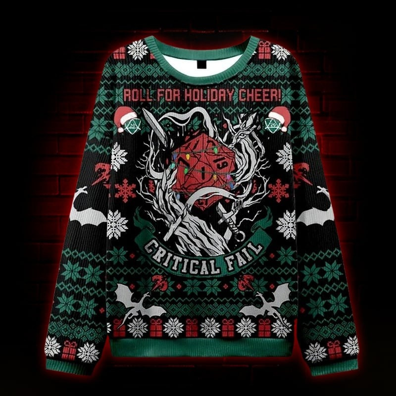 $39.99 – $44.99Price range: $39.99 through $44.99Roll For Holiday Cheer Ugly Christmas Sweater Unique Xmas Holiday Clothing Gifts For Him