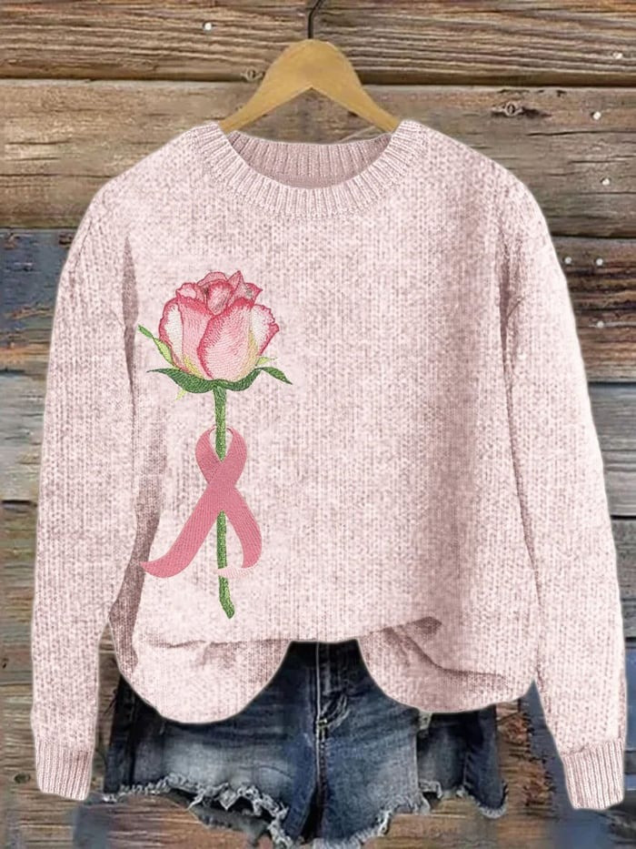 Rose Light Pink Sweater Best Clothing For Women Breast Cancer Awareness Present Ideas