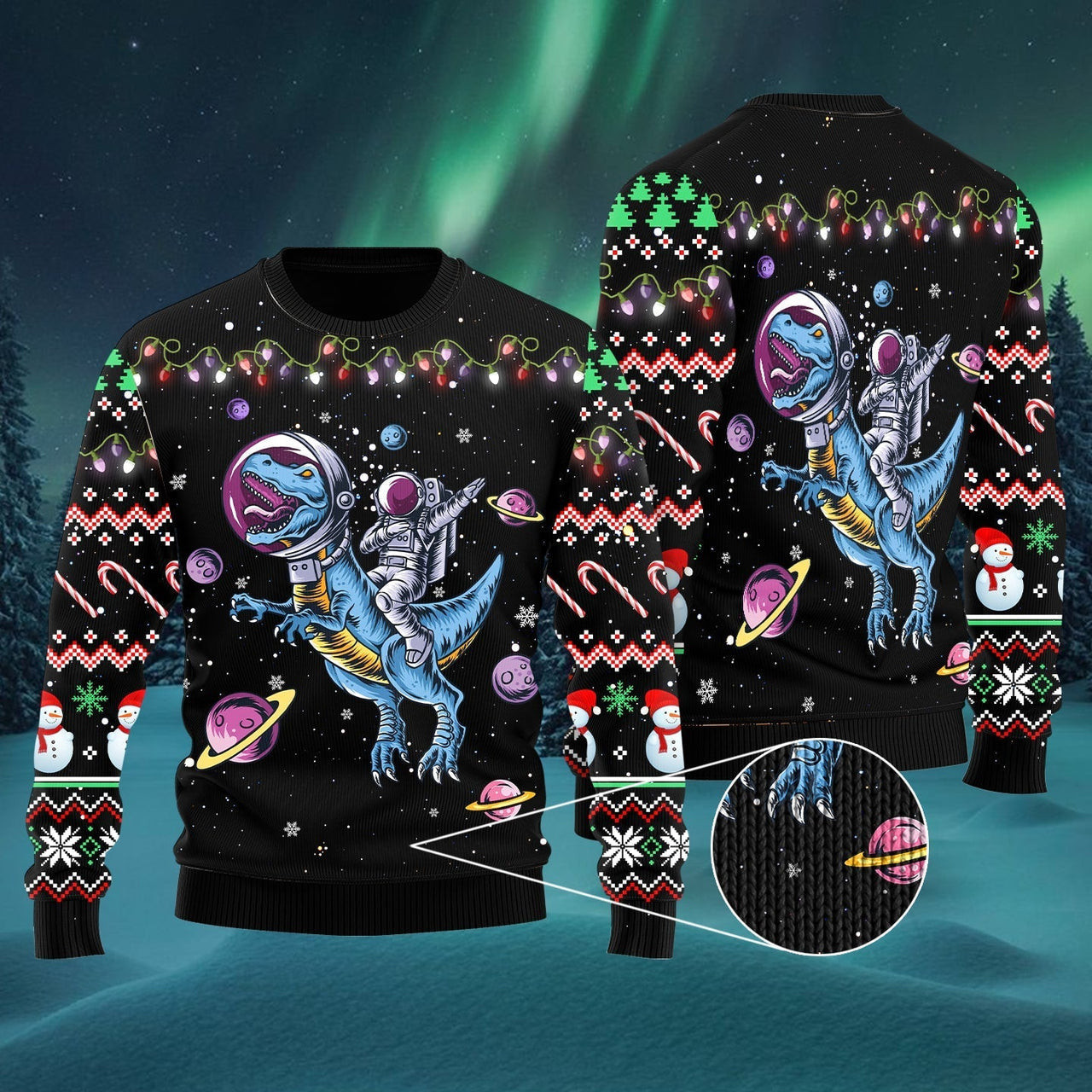 Astronauts Riding T Rex In Space Ugly Christmas Sweater Gifts For Dinosaur Lovers