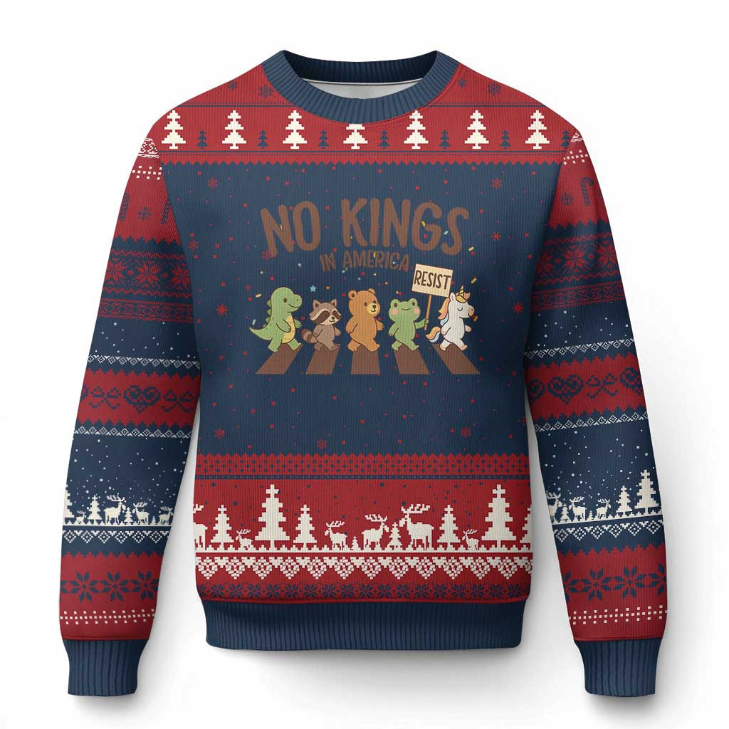 Rushgleam Animal No Kings In America Ugly Christmas Sweater Resist Protest Jumper Resistance Gifts