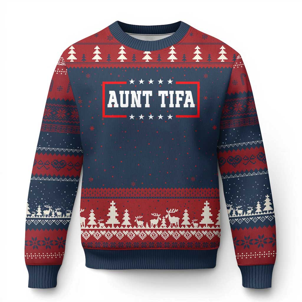Rushgleam Aunt Tifa Ugly Christmas Sweater Funny Political Sarcasm Patriotic Apparel Xmas Gifts