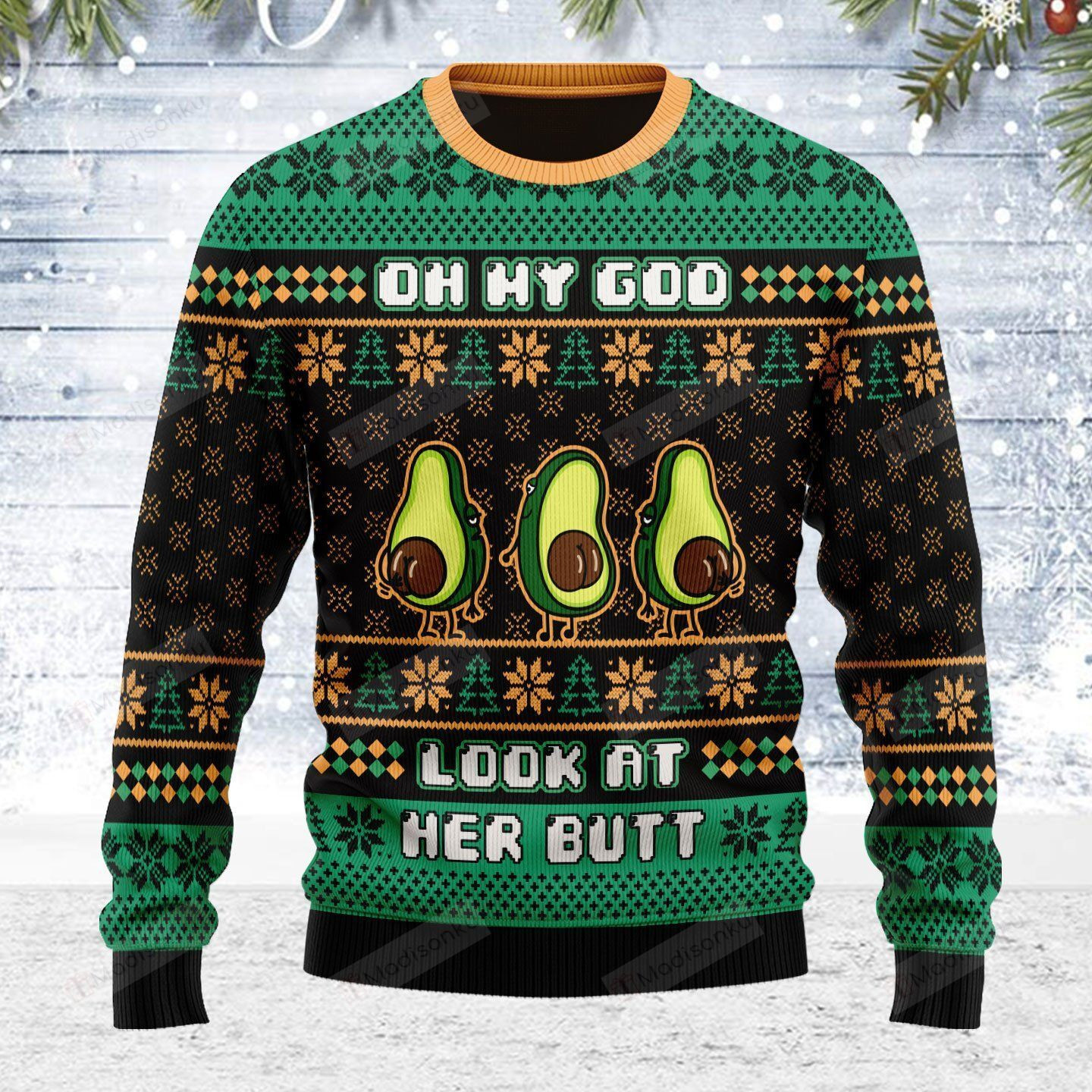 Rushgleam Avocado Look At Her Butt Ugly Christmas Sweater Funny Adult Christmas Sweaters Gifts