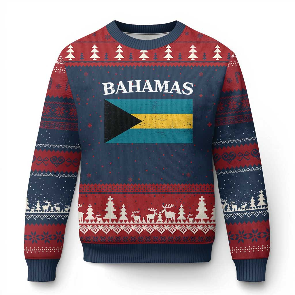 Rushgleam Bahamas Flag Ugly Christmas Sweater Best Bahamian Themed Sweater Gifts For Christmas