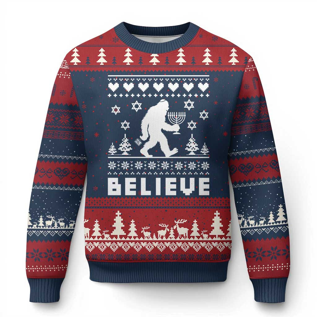 Rushgleam Bigfoot Believe Ugly Christmas Sweater Jewish Holiday Gift For Kid Who Love Bigfoot