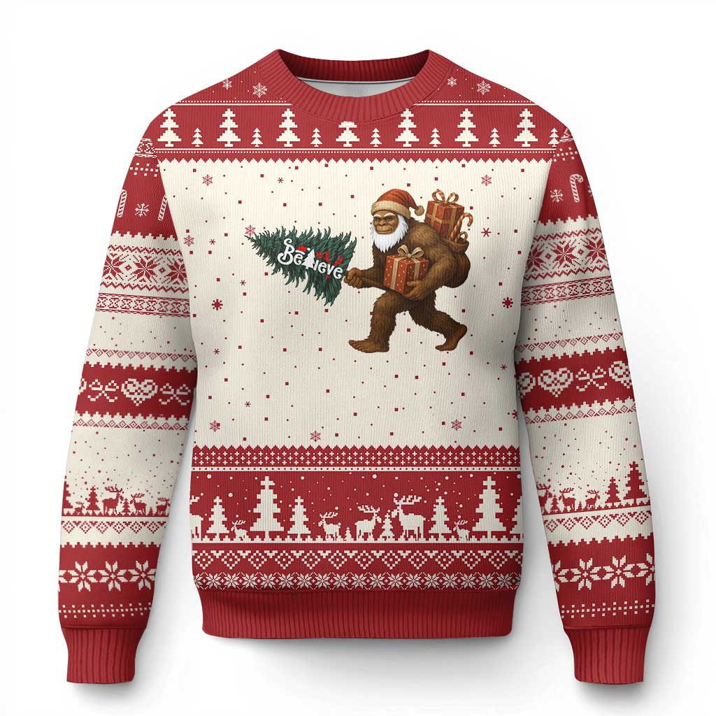Rushgleam Bigfoot Believe Ugly Christmas Sweater Holiday 2025 Gift For Bigfoot Lovers